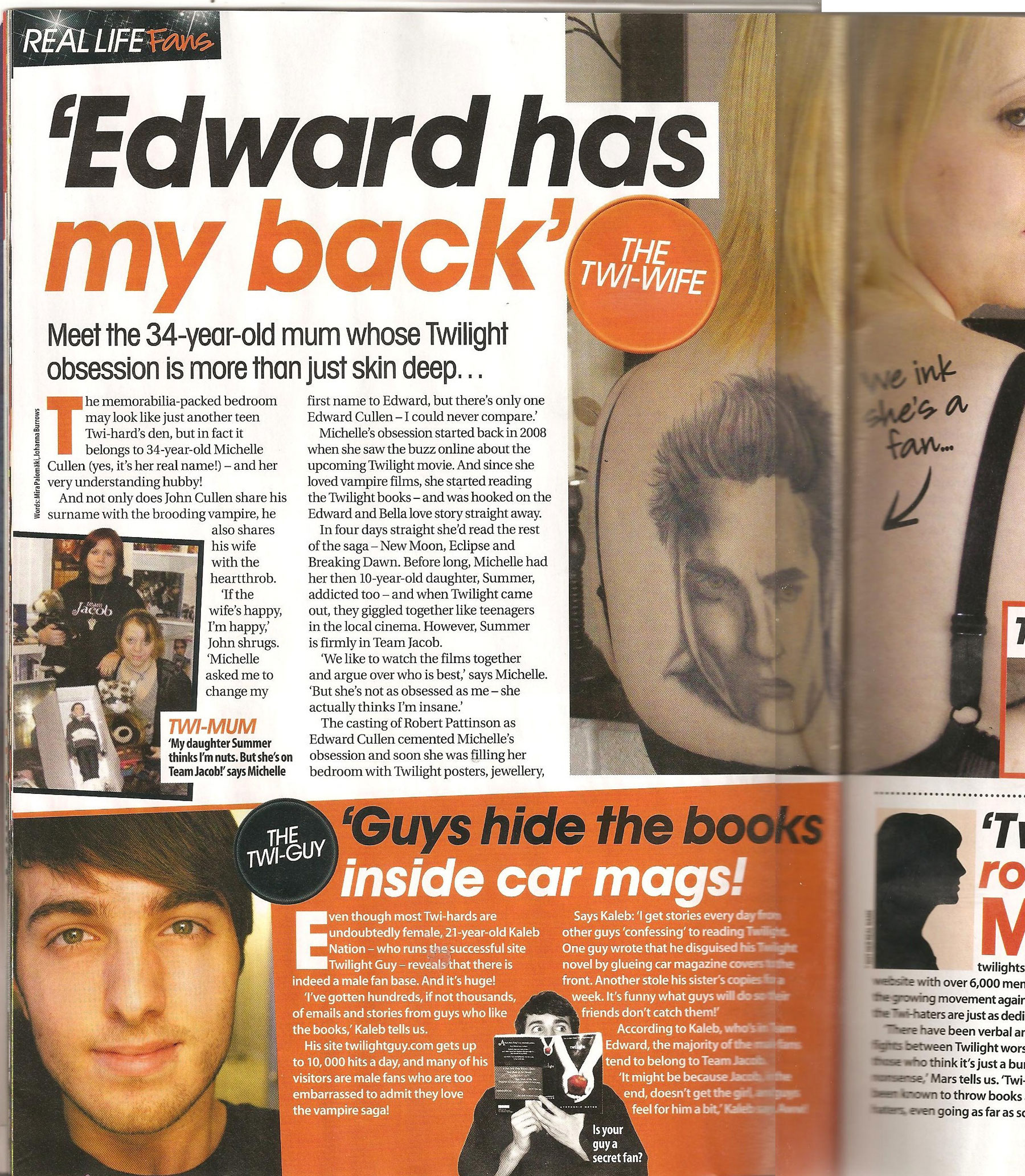 It’s funny seeing both pictures in a real magazine. The one of me with the book was actually taken as a joke a few months before I even started TwilightGuy.com, and I just decided to use it on the site. It was taken with my tiny, cheap Kodak easy camera, and has been popping up in magazines all over the world for the past two years (it’s probably the cheapest photo to ever be in a real magazine!). And the other one on the left is my new author photo :D